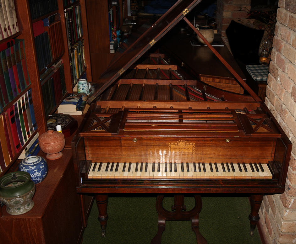 The first of these associates was Americus Backers, who “invented” the English grand action and from 1770 placed instruments mechanically similar to Silbermann’s mid-century versions of Cristofori’s grands in the Sheraton-type cases already used for English harpsichords. By the 1780’s, Broadwood was building instruments of guaranteed quality using the “mass production” methods of the time, while more individualised techniques were used by the Kirckmans and Broadwood’s fellow Scot, Robert Stodart, who had opened his own workshop in 1775.